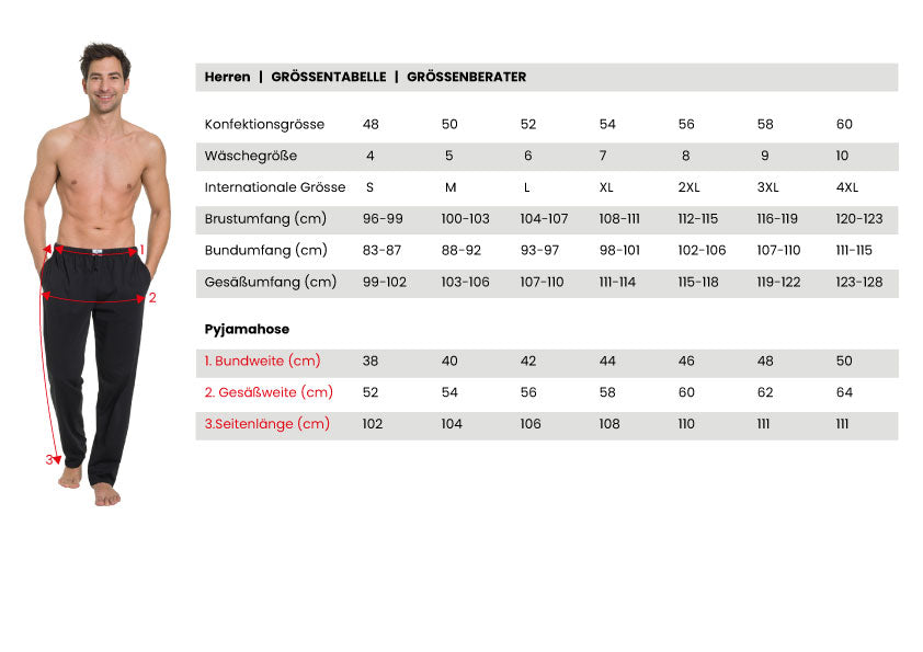 Konfektionsgröße | 48 | 50 | 52 | 54 | 56 | 58 | 60 |